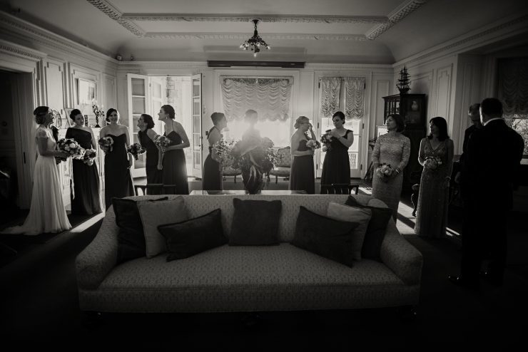 weddings, inside, living room, bridal party, bride, groom, marriage, procession